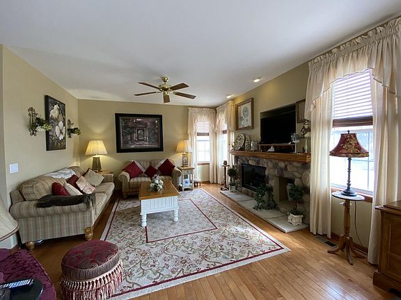 This well appointed home has all the upgrades you could ask for! Open entry with ceramic tile leading to the formal dining room with hardwood floors. Generous living room with beautiful views of the wooded preserve and Kishwaukee river, stone faced fireplace and plenty natural light. Eat-in kitchen with custom maple cabinets, granite countertops and all SS appliances including built-in double oven. Open staircase with oak trim and rod iron leads to the loft -sitting area. Master suite has walk-in closet and master bath with a tiled shower and jetted tub. Roughed-in plumbing in the basement waiting for your finishing touches. Attached 2 car garage and shed. Enjoy sitting on the covered front porch with professionally landscaped yard. Call for a private showing today!