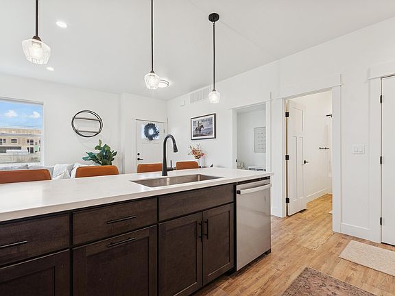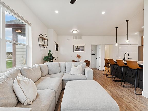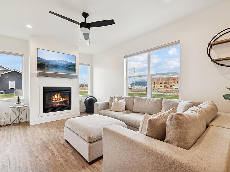Built in 2024, this like-new single-level home offers modern flair and comfortable living. Featuring 3 bedrooms and 2 baths, this bright home includes large windows, no carpeting, generous closet space, and an open layout. The modern kitchen showcases two-toned cabinets, vinyl plank flooring, and quality finishes throughout. Enjoy a cozy gas fireplace, central air, and the convenience of a washer and dryer included. Samsung frame TV professionally installed above fireplace will convey with property! The large attached garage is accessible from the alley. Located in a great neighborhood with walking trails and close to major shopping, Glacier International Airport, Glacier High School and downtown Kalispell — a perfect blend of modern design and prime location! Don't miss this single-level living gem!