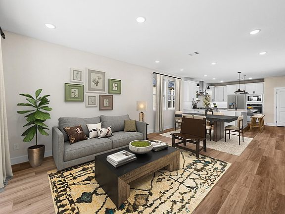 This 2-story layout blends the best of a stylish design package and functional features. Stunning luxury vinyl plank flooring guides you from the foyer and into the open living space boasting the kitchen, dining area, and great room. Enjoy impressive features such a kitchen island, quartz countertops, accent pendant lighting, white shaker cabinets, and stainless steel appliances. Escape to your primary suite through a private entry off the great room. Just steps away, enjoy the spacious primary bath complete with dual sinks and a large walk-in closet. The staircase draws you up to the second story which hosts the loft area, 3 secondary bedrooms and a full bath.