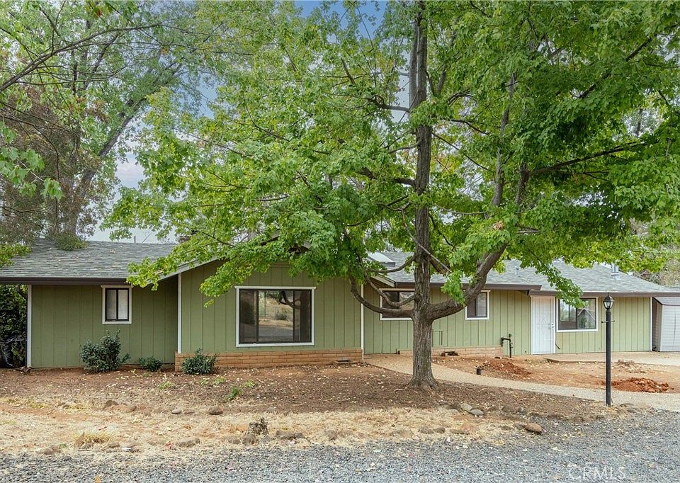 As you enter the home you are welcomed by the living room complete with a wood-burning fireplace that promises cozy gatherings and heartwarming memories during the snow-dusted winters. Continue into the Kitchen where the upgraded stainless steel appliances (2022) stand ready to aid your culinary adventures. Off the kitchen the french doors beckon from the dining room, leading you to the covered patio where al fresco dining takes on new meaning. A backdrop of fruit trees and mature foliage adds to the atmosphere of tranquillity, making the outdoors an extension of your indoor living space. The popular split-floor plan adds privacy from guests with the primary on one end and the former garage, transformed into a private third bedroom with direct access to the front and backyard, providing a myriad of possibilities. Come out to the front patio, a cherished vantage point for witnessing breathtaking sunsets. As the sun dips below the horizon, casting hues of gold and lavender across the Northern CA sky, you'll find solace on the front patio. In addition, this home is tucked away from the main road, an electric privacy front gate grants exclusive auto access, while ample parking awaits your cars, RV, or boats. Beyond the borders of your property, the town of Paradise blooms anew, offering an array of community festivities, including concerts in the park, a pop-up ice rink, a joyous holiday parade, and the delightful tradition of trunk-or-treat events for Halloween. With new homes emerging in proximity, you're part of an evolving landscape that embraces growth while preserving the revered essence of this town.