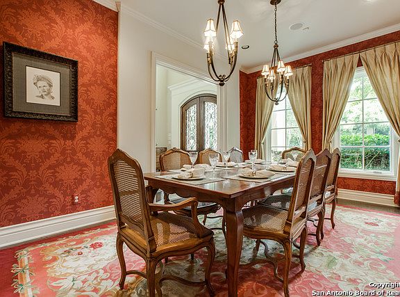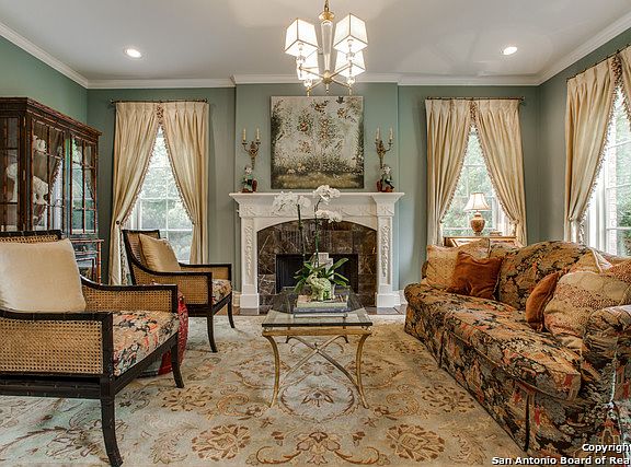 Magnificent, traditional home in the heart of Terrell Hills. Custom built 9 years ago, this amazing 7770 sq foot house has 4 living areas, 2 laundry rooms, 6 bedrooms, 6 full baths, 3 fireplaces and dedicated workout room. Lovely details abound...central music system controlled with ipad controls, 2 indoor kitchens, Pella windows/doors. 1275 sq foot guest house, 5 car garage, 1100 sq ft of covered outdoor patio and deck, new (2014) outdoor kitchen/entertaining area, Keith Zars heated pool/spa.