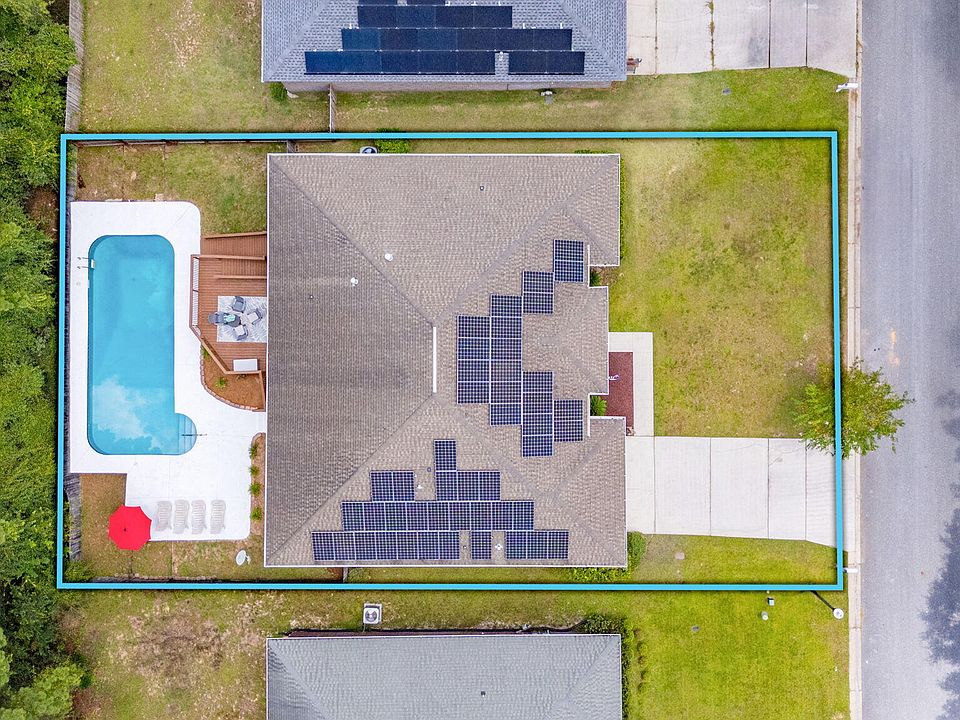 Looking for space, value, & an easy drive to 7SFG or Eglin AFB? This South Crestview home checks every box & sits in one of the most desirable neighborhoods in town, Fox Valley.With a 2025 roof & paid off solar panels, the value of this home is undeniable (electric bill=$30/month! Other major items have already been updated: HVAC/appliances 2021, pool liner 2020, water heater 2023.Inside, the home stretches out with room for everyone: 4 bedrooms, 3 FULL bathrooms, two separate living areas, a formal dining room, and a massive kitchen ideal for cooking/gathering. The star of the show? The pool! If you've been dreaming of Florida living, just bring your floaties, you'll spend every weekend here.Enjoy a 1640 saltwater pool & expanded concrete deck for lounging.*Private to the rear*