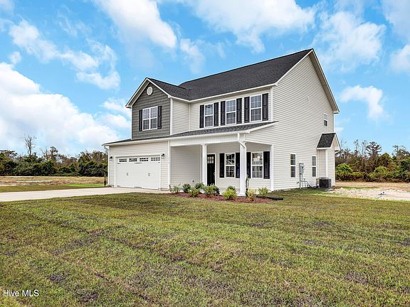 CONSTRUCTION COMPLETE AND MOVE-IN READY!! $12K FOR BUYERS CLOSING COST OR USE AS YOU CHOOSE! The Marvin floorplan lives spacious with Primary suite, 3 guest rooms, and 2.5 baths. Enjoy your favorite beverage on your covered front porch while enjoying the natural beauty of Eastern NC living. Inside, you are greeted with a beautiful foyer and a 11x16 formal dining room. Enjoy creating culinary creations in your new kitchen with an island & breakfast nook for those quick meals. Other features include stainless steel appliances, a self-cleaning smooth-top range, a microwave hood, and a dishwasher. When it is time to relax, you'll enjoy your spacious living room, complete with a fireplace for those cool winter evenings. See this home in Village Creek today!