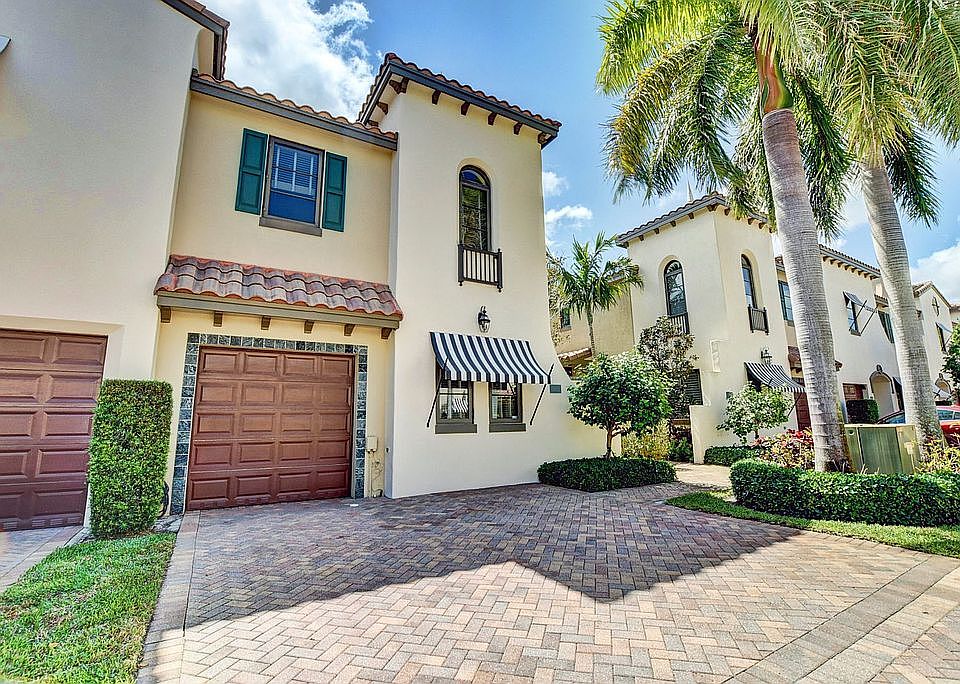 Don't miss this stunning two-story waterfront townhome inside a Mediterranean inspired gated community with its own resort style pool, hot tub, lagoon and private beach! This freshly painted, well maintained, and all around just plain beautiful home offers an extra-large great room for gathering friends and family, and a chef inspired galley kitchen with granite counters.NEW upgraded patterned designer carpet, NEW oil rubbed bronze hardware, NEW stainless appliances, NEW decorative ceiling fans and LED lighting, Hunter Douglas wood blinds and impact glass all throughout. Rare ''end unit'' with its own private courtyard.Upstairs comes complete with a spacious master retreat with two walk in closets, double sinks, floor to ceiling tiled walk in shower, and Jacuzzi tub.
