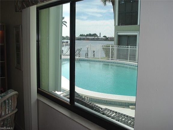 RARELY AVAILABLE BIMINI BASIN, SAILBOAT ACCESS first floor, end unit condo. Good sized den, with closet, can be utilized as 3rd bedroom. Check out the upgrades: New stainless steel Whirlpool kitchen appliances just installed, New HVAC in 2014, new 18" tile in all rooms except bedrooms, new carpet in bedrooms/den, all new double pane windows, new (never used) washer/dryer, new slider in family room, newly upgraded and tiled baths, raised panel kitchen cabinets and most importantly, this home has been replumbed. Exterior of building has been newly sealed and painted for that fresh look and your accordian shutters will keep you snug during those rare storms. Walk out and enjoy your morning coffee from the master bedroom slider to the winterized lanai with huge water views (on intersecting canal). 5 minute boat ride out to big water! If you're not fishing or boating, your guests will find you at the heated pool, just steps away, but rarely used by the residents-- your relatively private pool without the cost of maintenance!!. FRONT ROW SEATS FOR THE HOLIDAY BOAT PARADE! This is a truly lovely unit and should be at the top of your list!