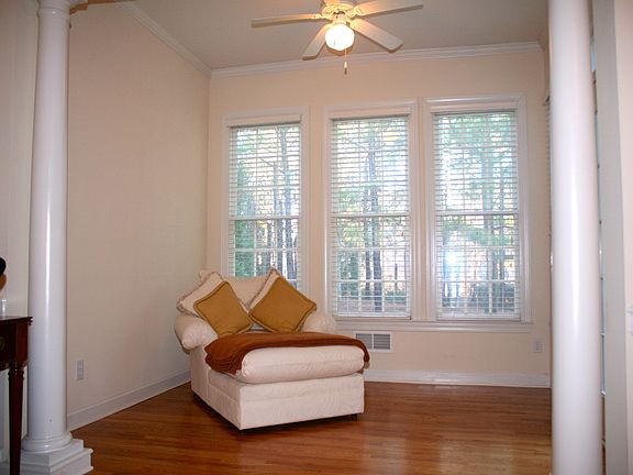 Spacious open floor plan w/rich hardwood floors & a Sunroom off family room overlooking community walking trail. Kitchen has stained maple cabinets, stainless appliances, and granite countertops. Iron stairwell balusters lead upstairs to spacious Master Suite with Vaulted Sitting Room. Hardwood floors in upper level hallway. Finished bonus room in basement. Plantation shutters/blinds, indoor sprinkler system & security system. Neighborhood Description Vinings Estates