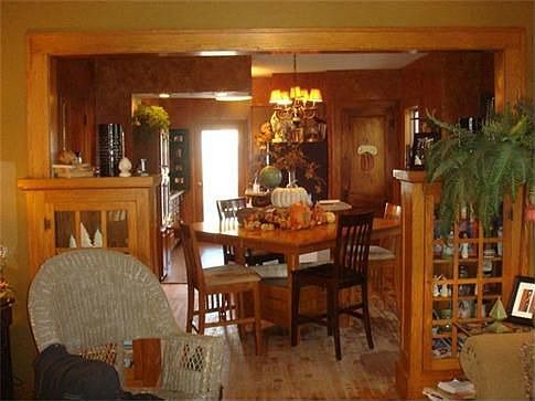 Cozy 1.5 story with 4-5 bedrooms, 2 bath areas and loaded with character. Lots of updates, oak woodwork & fenced back yard. Very affordable family home! Large 8 by 26 covered porch on the front of the home.