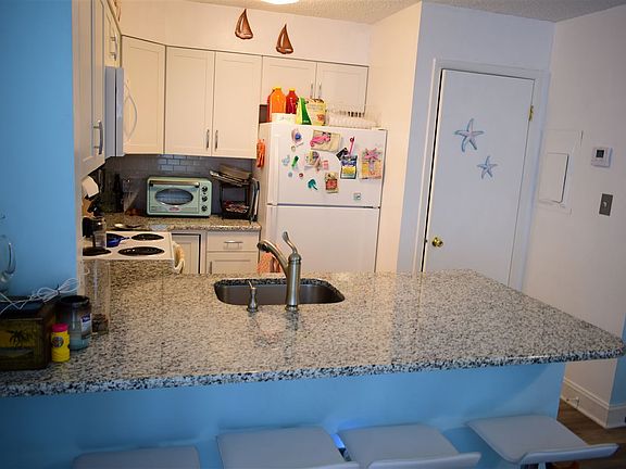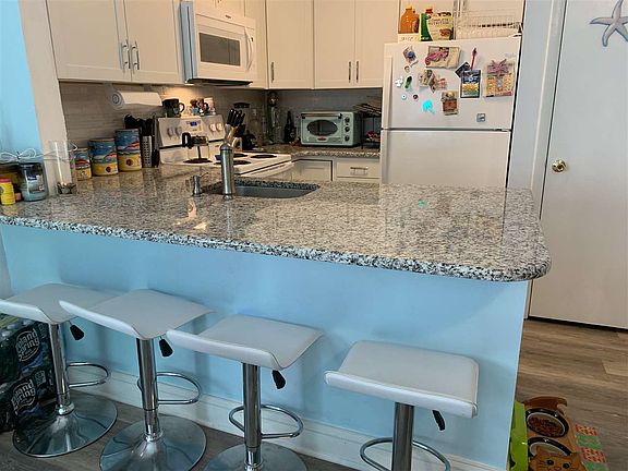 HARBOR LIGHTS CONDOMINIUM TOWNHOUSE.......year round community with pool, marina district location, bay block and great breezes off the water. Stroll to the water's edge, The Wharf, fish nearby, bicycle everywhere. Recently renovated unit with beautiful new kitchen, featuring white shaker cabinets, breakfast bar, granite counters, whirlpool kitchen appliances. First floor has beautiful new waterproof vinyl plank flooring. Newly renovated half bath. New paint throughout. The first floor features living room, kitchen, dining area, 1/2 bath, and laundry. This unit has a large deck off the back (one of only 4 units with back decks). Bay views and gorgeous sunsets off the rear. Neutral wall to wall on stairs and second floor. Second floor features 2 bedrooms and a full bath. Bed can be placed so that you wake up to a water view! Master Bedroom has a cathedral ceiling and large closet with storage. Floored attic storage also. Partial furniture and bedroom TV's to stay. Condo association replaced the roof in 2019(all assessments have been paid). The pool was renovated in 2017. The condo fee covers the master insurances, common area maintenance, pool maintenance, trash removal and water & sewer. 2 parking spaces close to unit are included.