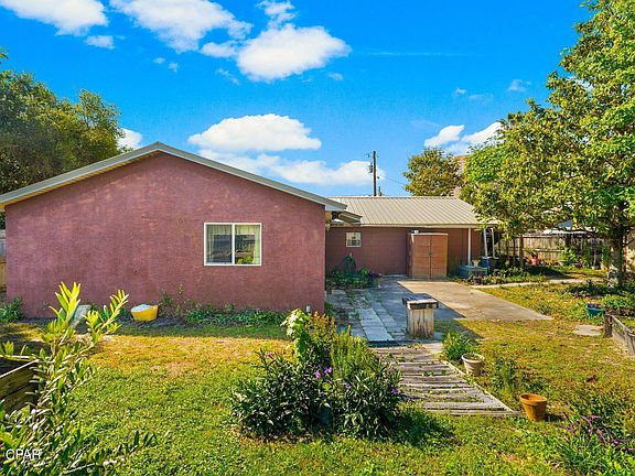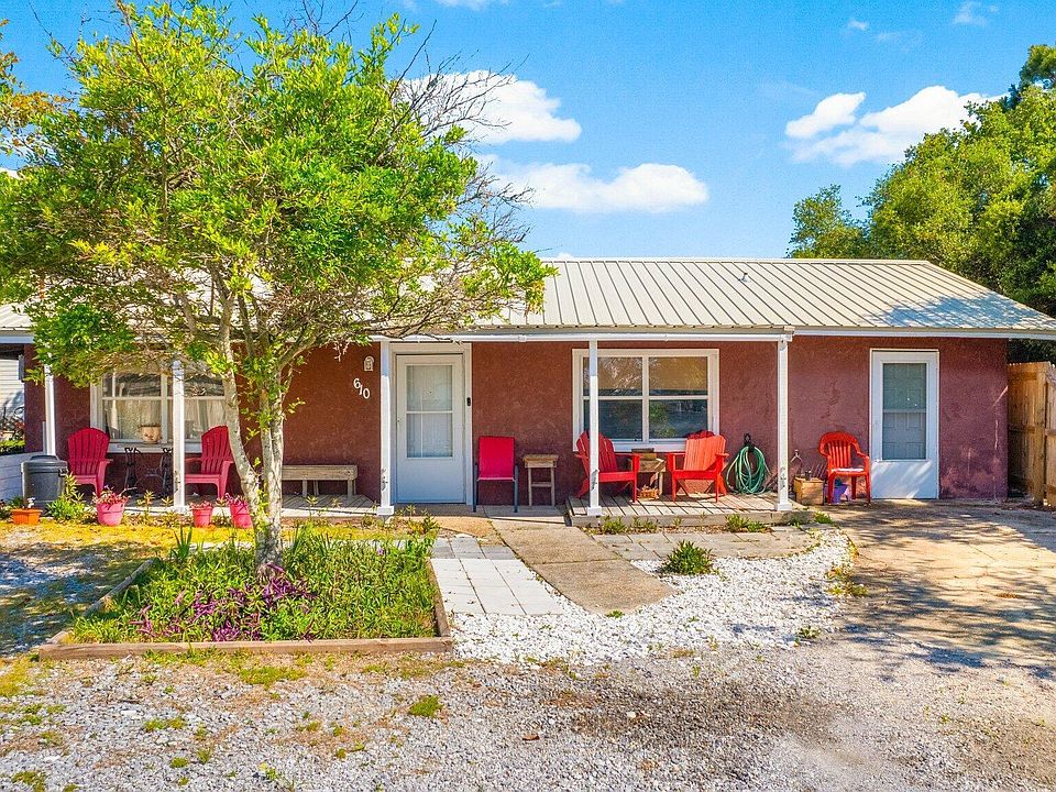 Priced to sell and embodying the essence of Old Florida charm, 610 West Caladium Circle in Open Sands, Panama City Beach, is a rare gem awaiting its new owner. This heritage Florida cottage boasts 1584 heated/cooled square feet and is nestled on a spacious, pie-shaped lot adorned with majestic heritage trees and planters, offering a serene and picturesque setting. Situated just steps from Front Beach Road and less than 1,100 feet from the Gulf of Mexico, residents can relish in the tranquil sound of waves crashing on quiet nights, all without the need for flood insurance thanks to its Flood Zone 'X' designation. The home welcomes you with a quaint double driveway leading to an inviting open porch, perfect for enjoying sunny days and evenings in rocking chairs. Inside, the open and airy layout presents three bedrooms and 1 bathroom, with the potential for expansion in the enclosed garage, ripe for conversion into separate living space. The living room flows seamlessly into a beautifully appointed kitchen boasting ample storage cabinets. The master bedroom offers direct access to the back patio and backyard, while two private bedrooms cater to guests, one of which can be easily transformed into an office or entertainment room. Revel in the quiet, Old Florida feel of the neighborhood, where friendly neighbors and the absence of an HOA enhance the appeal of this truly unique property. Discover why homes like this are so highly coveted and schedule a showing today and make this legacy Old Florida home your own, whether as a primary residence or a cherished second home (note: no short-term rentals allowed at this address).