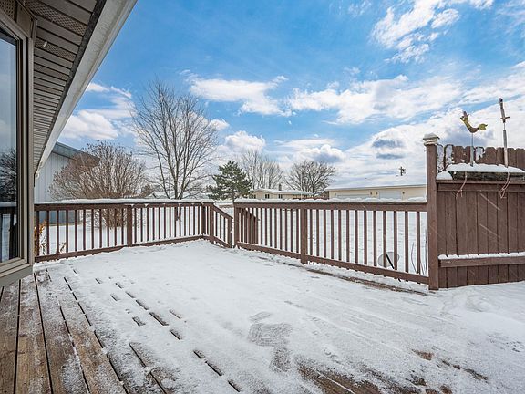 Welcome home to this cozy three-bedroom, two-bathroom rambler perfectly nestled at the end of a quiet dead-end street. The main floor features a comfortable layout, including a spacious primary suite with a large jacuzzi tub and a second full bath for convenience. Beautiful hardwood floors and crown moldings. The finished lower level offers a welcoming family room and a third bedroom, complete with a newer egress window. Appreciate thoughtful updates, including an on-demand hot water heater. Step outside to enjoy the spacious deck and privacy fence, perfect for outdoor relaxation or entertaining. The oversized two-stall detached garage (32x28) provides plenty of space for vehicles, tools, and toys. Conveniently located near Hwy 169 for easy commuting, this home is also close to a national chain convenient store, schools and parks. ATV trails and area lakes, making it ideal for outdoor enthusiasts.
