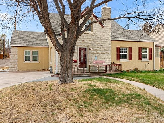 This Charming home is located in one of Pueblo's most desirable historic neighborhoods, and consists of 3 Bedrooms + office + bonus room, 2 baths, with detached 2 car garage. You will want to cozy up in the lovely living area with gas fireplace! The kitchen is cheerful and bright, with with exposed brick and walks out to the covered back patio and well kept backyard. The upper level has a beautiful en suite bedroom with a small adjacent room, perfect for a reading room, nursery or whatever you need! Updated bathrooms are consistent with the era, and add to the character of the home. There are original hardwood floors throughout . Walk through the French doors to the office, which has its own separate entrance, and has a dynamic feel with its rounded walls adorned with glass block, to keep it bright yet maintain privacy. The location is fabulous, convenient to shopping, restaurants, parks, libraries and more! (The second bedroom on the main level is technically conforming as it has a window and closet, but is a shared laundry room.) Office could be a great 3rd bedroom if you decided to use the other bedroom as laundry/storage.