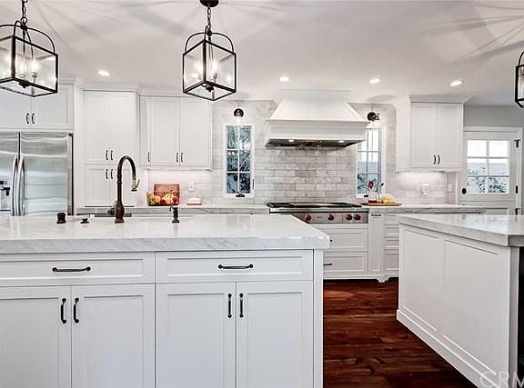 A rare find on a quiet cul-de-sac in the desirable southwest area of El Segundo, this corner home boasts a majestic frontage. Taken to the studs in 2016 this masterfully crafted home was carefully curated to it's exquisite completion. Luxurious finishes and well designed details set this apart from all the others - beginning with a welcoming gated entry with charming swing & porch to a spacious foyer with mud room, to the oversized dining room with it's own fireplace. This kitchen is truly the heart of the home with two oversized kitchen islands, rich copper faucet & cabinet handles, wolf range, wine fridge, double ovens, plus a charming dutch door. Downstairs are two bedrooms (one a fabulous Au Pair or in-law suite), one gorgeous bathroom plus powder room. Just off the kitchen is the family room with french doors overlooking the fenced yard. Upstairs, the master bath, reminiscent of a Four Seasons suite including a generous soaking tub with it's own chandileer, a two person shower, stunning Rohl fixtures & lovely custom cabinetry. Two additional bedrooms flank the second family room - perfect for homeschooling where everyone has their own creative space. Wonderful deck is a great little get a way, is being used as a mini garden area! Luxury, quality, spaciousness, and access to the best in El Segundo with only a 10 minute walk to Main Street, Short walk to the award-winning elementary and high school, a skip to the beach and a park within the same block.