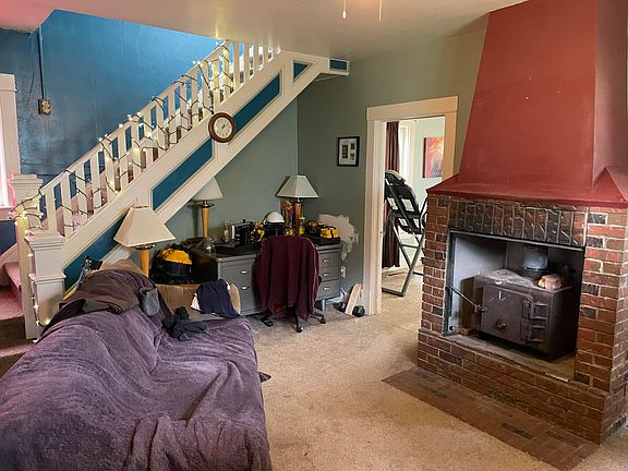 3 bedroom 1 bath home with main floor laundry, 1 bedroom on the main floor and 2 bedrooms upstairs, the second story windows have all been updated, wood stove, and room in the back to park 3 vehicles or build a garage.