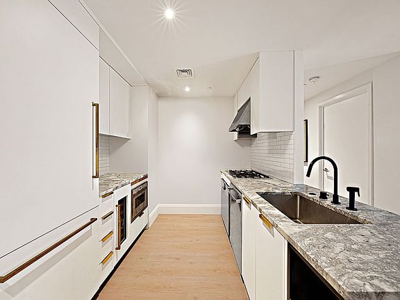 610 Warren occupies a prime location at the intersection of Boerum Hill, Carroll Gardens, Park Slope, and Gowanus, offering the quintessential Brooklyn lifestyle. Immerse yourself in the borough's finest offerings, from shopping along Atlantic Avenue to leisurely brunches on Smith Street, and idyllic outings in Prospect Park. This exceptional residence boasts flawless design by Paris Forino, with small details that make this experience unique throughout the residence. The current owner acquired the unit directly from the sponsor. This expansive two-bedroom, two-bathroom, generously sized unit is flooded with natural light from its large windows and two spacious balconies. Upon entry, you are greeted with an open kitchen, living room, and dining area with 7.5-inch white oak floors throughout the space. The kitchen exudes modern/contemporary elegance and features Brazilian Arabescato-honed countertops and a ceramic white tile backsplash. The integrated refrigerator discreetly blends into its surroundings and small designer details were added like the built-in cutting board and a blackened steel storage niche nestled within the island. Bring your gourmet aspirations to life with top-of-the-line stainless steel Gaggenau appliances, including a cooktop, oven, microwave drawer, and a Bosch dishwasher. For your added convenience, an LG washer and dryer are located nearby. The high-end design is continued throughout the residence, with a spa-like primary bedroom en suite showcasing Sivec marble wall tiles, custom teak floor inserts within the glass-enclosed walk-in shower, and a bespoke white oak wood vanity crowned with a marble top. The secondary hall bath makes a dramatic statement with its striped marble mosaic wall and floor tiles, featuring Sivec and Nero Marquina stones. A built-in soaking tub enveloped in arctic white elegance awaits, accompanied by elegant chrome Waterworks fixtures. The building features a welcoming lobby, with a part-time door attendant and virtual concierge. The resident's lounge features a billiards table, lounge area, and prep kitchen, offering a space for hosting and relaxation. The building's amenity floor encompasses a state-of-the-art fitness room, an engaging playroom, and even a pet spa for your furry companions. Ascend to the landscaped rooftop deck to savor the panoramic Brooklyn skyline. Grilling stations and inviting lounge areas await your enjoyment. Additional perks include a parking space with electric car charging, private storage, and a 15-year tax abatement.