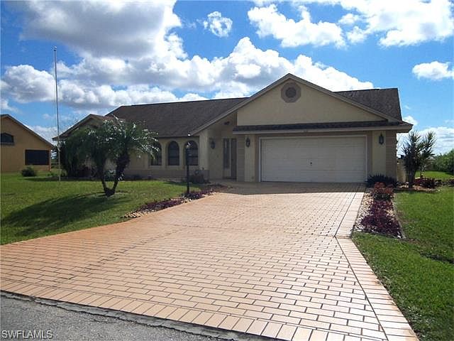 Brand new roof (March 2016) on this large pool home with four bedrooms, (plus den/family room) two baths, two car garage in Amberwood Estates in Lehigh Acres. The landscaping is mature and well tended with a lovely open view at the rear of the property overlooking a canal. Kitchen overlooks the pool and lanai. This split floor plan offers easy entertaining for family and guests. Four sets of pocket sliders lead you from the 2000 square feet under A/C to the glassed in/screened lanai offering an additional 500+ square feet for entertaining. Then you move out to the pool area with over 1,200 square feet under screen. Home is wired for portable generator, has an alarm system, reverse osmosis water filtration system, city water and sewer and underground power lines. This is a traditional sale - fast closing. As Is with Right to Inspect.