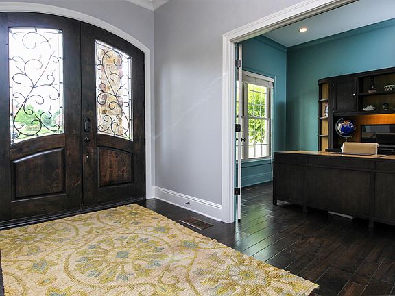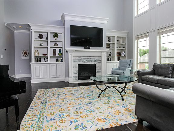 If attention to detail is you, then you would be amiss for not visiting this Locust Creek home! From the 2 storied arched front porch you are greeted with a beautiful double door entry that welcomes you into the hardwood floored foyer that extends to the large great room with soaring ceilings, and gas fireplace. The open floor plan leads to a designer chefs kitchen that has custom soft close cabinetry, granite counter tops, tiled back splash, recessed lighting, top of the line stainless steel appliances and a grand island with seating. A sweeping wrought iron staircase and landing overlooks the great room, which features custom built-in cabinetry. The walkout basement features tall ceilings, stained concrete floors with a bar made of a unique stained concrete counters and outlined with brick work that matches the exterior. The bedroom and workout room in the basement has what you need for your own space. This is outside of the 120" tv screen built in the custom cabinets The workout room boasts wall to wall rubberized mats and sauna for post work out relief. The 3 large bedrooms on the upper level each has their own bathroom with granite counter tops. The first floor master bathroom has recently had new tile work completed and a ''rain forest'' type shower head in the walk in shower. Smart home tech with speakers all around. There is simply to many upgrades to list.