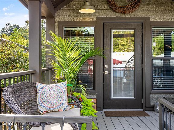 Inviting front porchLoft spaceQuartz countersModern kitchenFull-size appliancesWine fridgeCeiling fan
