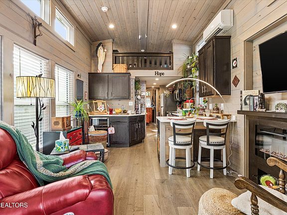 This tiny home may be small in size, but it's big on charm and upgrades! Every inch has been thoughtfully designed with style and function in mind. The modern kitchen is a true highlight, featuring full-size appliances, quartz countertops, and even a wine fridge, perfect for entertaining or just unwinding at the end of the day. Hardwood floors and sliding barn doors bring warmth and character throughout, while a whole-home water filtration system ensures fresh, clean water for everyday living.