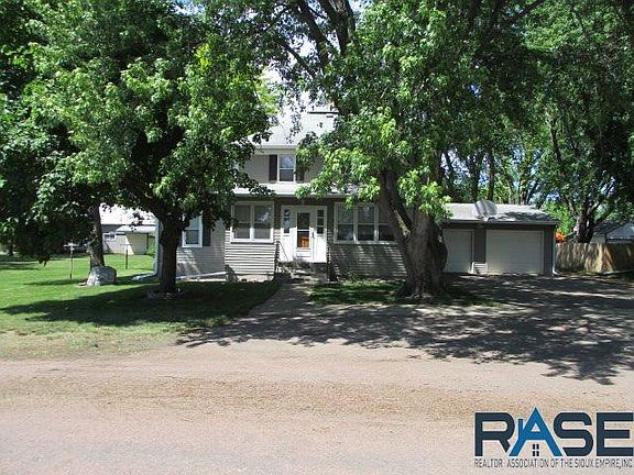 Check out this beautiful 4 bed, 2 bath, home sitting on a huge ACRE lot. In city limits and connected to city utilities! Peaceful and private setting with lots of shade and perfect for an Acreage owner. Many updates over recent years include; A/C, Furnace, kitchen, bathroom, gutters, plumbing and electric, plus more. This home features beautiful woodwork, main floor bedroom and laundry, formal dining and a large sunroom providing plenty of natural light. Attached is an oversized 2 car, heated garage. Step out and relax on the backyard 27'x24' patio, perfect for entertaining. Property includes a large shed with 2.5 stalls for garage and storage space as well as a loft. Bring your toys! Great opportunity to build equity with an outbuilding perfect for a future guest home/man cave/she shed/ or office. Just 30 minutes from Sioux Falls or Mitchell and only 4 miles west of beautiful Lake Vermillion. Don't let this beautiful property pass you by! Seller is a licensed Real Estate agent in SD.