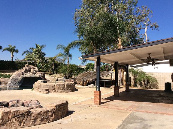 Stunning single story residence on the end of a cul-de-sac street is an entertainers delight! The expansive ¼ acre + lot boasts a rock pool, waterfall, slide, spa, complete with swim up bar, BBQ and firepit - perfect for large gatherings with family and friends. The back yard sports facilities include basketball court, baseball pitching mound, baseball batting cage which doubles as golf swing net. Plenty of extra space for storage. This home features new windows, renovated hardwood flooring and new carpet in bedrooms and hallways. The contemporary kitchen includes granite counters, an island for casual seating, dining area, and new stainless steel appliances. Master bathroom upgrades include Quartz counters, custom cabinets, modern tile décor and fixtures with French doors leading to the spectacular tropical back yard. This home is a showpiece and awaits the arrival of your family. Completely turnkey and Move-In ready !!