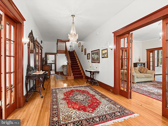 Welcome to 6100 Frederick Road, a truly exceptional and historic residence in the heart of Catonsville. Offering six bedrooms, three full and one half baths, this timeless home showcases exquisite original details including hardwood floors, stained glass accents, wood moldings, and soaring ceilings that evoke the elegance of a bygone era. A once-in-a-lifetime opportunity, this prestigious property has been lovingly cared for by only four owners in its 98-year history. A gracious center hall foyer welcomes you inside, where to the left lies a formal sitting room with a stunning marble decorative fireplace, and to the right, a formal living room with a brick fireplace that flows into the sunroom and dining room, each accented with French doors and hardwood floors. The beautifully updated kitchen features crisp white soft-close cabinetry, quartz countertops, stainless steel appliances, a walk-in pantry, and a mudroom with side entry. A library, which could serve as a seventh bedroom, and a powder room complete the main level. The upper level follows a traditional four-square design, offering four spacious bedrooms with hardwood floors, walk-in closets, and two Jack-and-Jill baths. This level also includes an office space. The top floor includes two additional bedrooms, a third full bath, and multiple versatile spaces ideal for storage, a home office, or creative retreat. Set on a private, tree-lined half-acre lot, the property features a two-car detached garage with extended storage, a charming gazebo and patio, a storage shed, and exterior motion-sensor lighting. Recent updates include a new roof, replaced main sewer line, new gutters, exterior paint, a new boiler, and an expanded garage. With a zoning variance allowing use as a Bed and Breakfast or office space this property offers a rare opportunity to own a cherished piece of Catonsville’s history lovingly maintained and ready to welcome its next chapter.