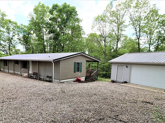 REDUCED $20K > 10+ Acres with Single Wide Mobile Home (converted to Real Estate) an additional 12x24 All Seasons Room, 12x42 covered back porch, fenced back yard, 3+ car detached garage, Burr Oak City Water and on private septic system.  Generac Whole House Generator (propane).  Updated JenWeld Windows and All Metal Roof on Home and Garage.  Enjoy many 4x4 paths and very private setting.