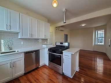 4 Story brick building in West New York featuring modern layouts, hardwood floors, brand new bathrooms & kitchens, utilities are "state of the art". Near train, buses and schools. We have one 3 BR unit, six 2 BR units and three 1 BR units. We will need from prospective tenants 1 1/2 month security deposit, 1st month's rent, background check ($50) and 1 month broker fee. For more info click on documents (D) for a breakdown of units and prices.