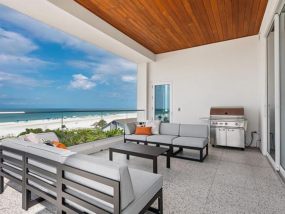 Under contract-accepting backup offers. A Once-in-a-Lifetime Offering! Introducing Penthouse #401 at Halcyon Siesta Key—an extraordinary coastal sanctuary where architectural brilliance meets unparalleled exclusivity. This is not just a residence; it’s a legacy. Set atop a boutique, six-unit Gulf-front building, Penthouse #401 is the first and only unit ever to be offered for sale—a true rarity as timeless and coveted as the quartz-crystal sands of Siesta Key Beach, just beyond your expansive floor-to-ceiling windows. Enter through a private elevator into your own foyer and be instantly captivated by panoramic views of the Gulf of Mexico. Encompassing 3,525 square feet, this residence was masterfully designed to blend modern sophistication with relaxed coastal luxury. At the heart of the home lies a chef’s kitchen that redefines gourmet living: top-of-the-line Wolf appliances, double ovens, dual sinks, an oversized island, built-in wine fridge, walk-in pantry, coffee bar, and bespoke cabinetry—crafted for both grand entertaining and effortless everyday living. The open-concept layout flows gracefully through dining and living spaces, enhanced by polished terrazzo flooring and Lutron-controlled lighting and shades that adjust with the touch of a button. Wake up to shimmering Gulf views in the tranquil primary suite, a true retreat offering a spa-like en-suite with radiant heated floors, dual vanities, a sculptural soaking tub, and an oversized glass-enclosed shower. Step outside to a spectacular 674 sq. ft. wraparound balcony—ideal for morning espresso, sunset cocktails, or simply soaking in Siesta Key’s year-round beauty. Three additional guest suites provide private en-suite baths and generous closet space, while a full laundry room, powder bath, and abundant storage complete the home’s thoughtful layout. A private two-car garage ensures convenience and security—an invaluable feature in this exclusive enclave. Life at Halcyon is curated for ease and elegance, with upscale amenities including on-site maintenance, a historic clubhouse, beachfront pool, grilling station, fire pit, and private beach access. Just minutes from Siesta Key Village and Sarasota’s cultural and culinary delights, this location offers the perfect blend of privacy and accessibility. Penthouse #401 is more than a luxury residence—it’s a one-of-one opportunity to own a piece of Gulf-front history on Florida’s most treasured beach.