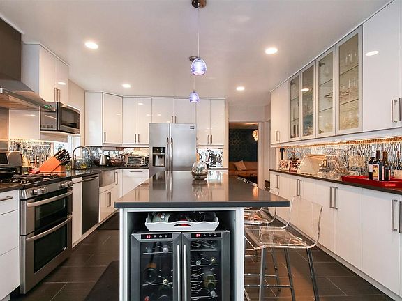 Extraordinary location ... Gold Coast, near the magnificent Hudson Waterfront NYC Skyline views. The perfect marriage of character and charm w/today's modern luxuries. Immensely appealing multi-family high-end designer upgrades, 2 open kitchens, 3 FBTHS, 5 BRMS, custom closets throughout including second level MBR walk-in-closet and impressive kitchen w/new SS appliances, grey stone counters, custom mirrored backsplash and access to private balcony. Italian marble fireplace, plenty of natural lighting and wood flooring throughout, crown moldings, perfectly landscaped w/small gardens and glorious deck great for outdoor entertaining. Full use basement w/full bath. Close distance to shopping, restaurants, w/easy access into NYC for those working in NYC. Quiet neighborhood, parking a breeze-1 car garage, 3 car driveway