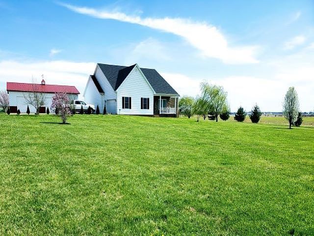 Spacious rooms, doorways and foyer in this 3 bedroom home with partial basement. Fresh paint, new carpet, Gray interior plus an inviting sunroom for enjoying the morning sunrise. A beautifully 3.28 landscaped yard with a 1200 sf pole barn. Also, a bonus view of the famous Posey County's "Tea, Coffee, Sugar Flour" Bins. The Master Bedroom features a full bath, a 14 ft closet leads to the laundry area and kitchen area. Its a wrap around for close proximity. Includes Appliances and a kitchen Island bar.