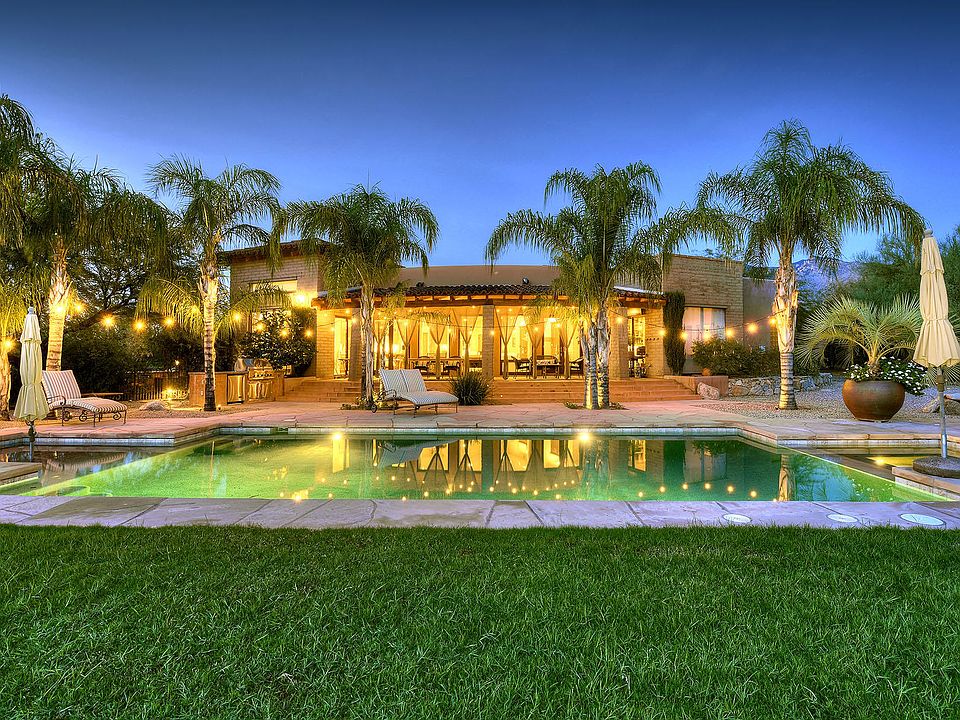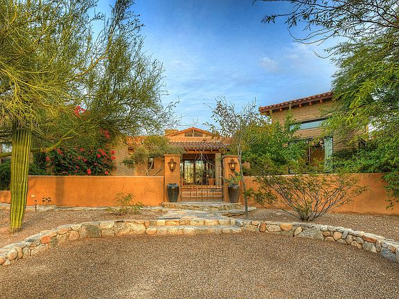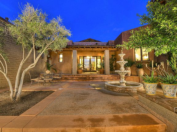 * VIEW VIDEO: https://az.movinghometour.com/22002492_Tucson%20MLS * Words and photos can't capture the beauty of this stunning mud adobe contemporary, featured on the front cover of Tucson Lifestyle Magazine, with 4 bedrooms, 3 1/2 baths, 3,926 sq. ft. and located on a .83 acre lot in the high central Catalina Foothills in a neighborhood with no CCRs or HOA dues. Courtyard entry with fountain leads into living room with soaring beamed and planked cathedral ceiling, elegant and classic chandelier, exposed mud adobe wall and masonry fireplace. Enter the spacious great room/kitchen with fireplace, high ceiling, walls of windows, fireplace, chef's kitchen with SS appliances, granite counters, center island with breakfast bar, knotty alder cabinets and dining area with soaring beamed and planked ceiling and rustic/elegant chandelier.