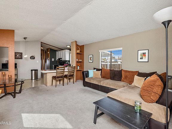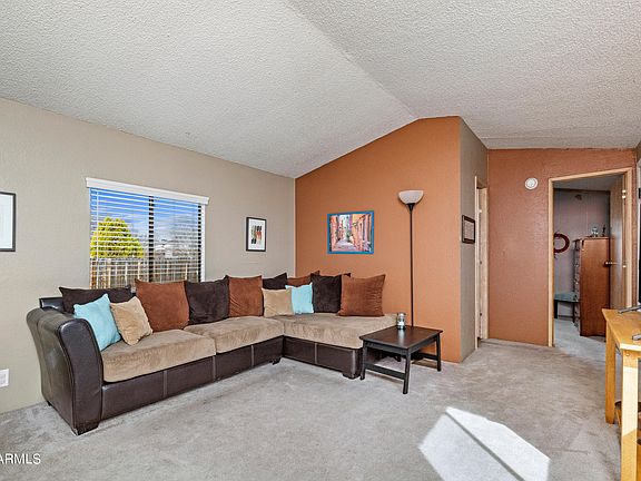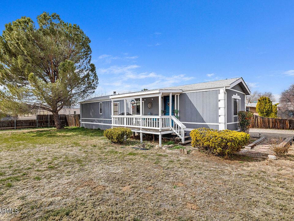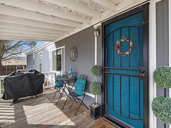 Charming manufactured home in Prescott Valley features 2 bedrooms and 2 bathrooms. It has been very well kept and is in great condition. The home has a cute and cozy feel to it. There is a carport for covered parking and a storage shed for additional storage space. The backyard has an open patio perfect for outdoor entertaining and the front porch is a great spot to sit and relax. The open kitchen is perfect for cooking and entertaining guests. Overall, this is a great home in a great location.