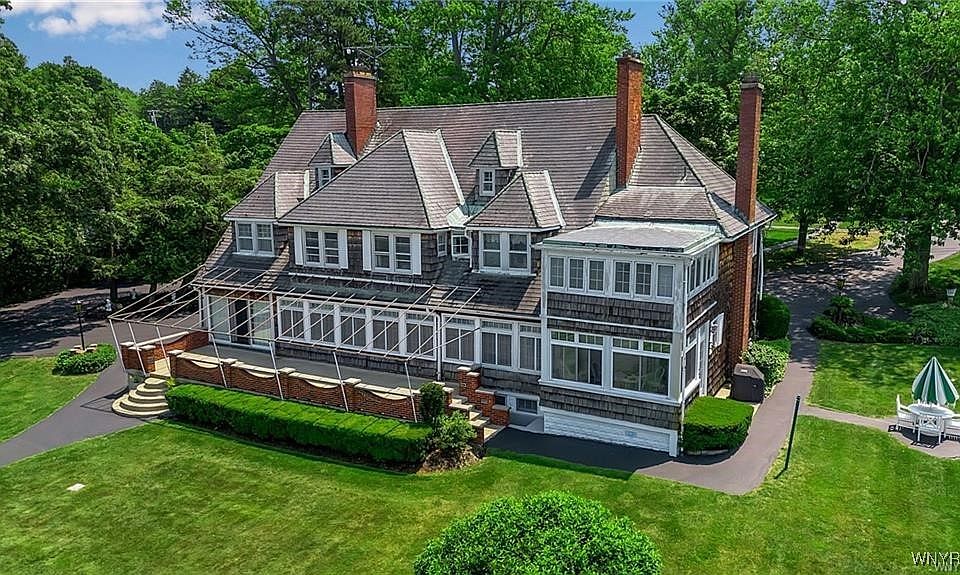 Stately Old Lake Shore home is filled with charm and character throughout. Set on a mature treed lot with gardens and gorgeous sun set views, this home features expansive living and dining spaces designed to capture tranquil lake views. This five bedroom, four full bath, 2 two half bath has the old world charm. Enjoy the pool, pool house, and classic appeal perfect for entertaining family, friends, and clientele. Come sit on the deck with panoramic views of the skyline with 176 feet of lakefront. Additional 8 acres with a four car and a two car detached garage. Possibly two buildable lots. One on Old Lake Shore and one on Schoellkopf. Note: Appraiser updated Square Footage to 6220 sq. ft. See MLS# B1625073.