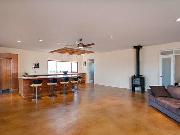 5 acres with European Design home featuring private courtyard. Construction materials are Rasta Blocks. For more information go to www.Rasta.com. Great room concept, with beautiful master suite with custom walk in closet, inside laundry/utility room, attached double garage. Gorgeous polished concrete floors with radiant heat. High end throughout including Wolf & Bosch Appliances, Libeherr Refrigerator, Shaws Apron Sink, Victoria Albert Bathtub Hansgrohe Faucets in Master bath. Attached Double garage and more. Call agent for list of amenities.