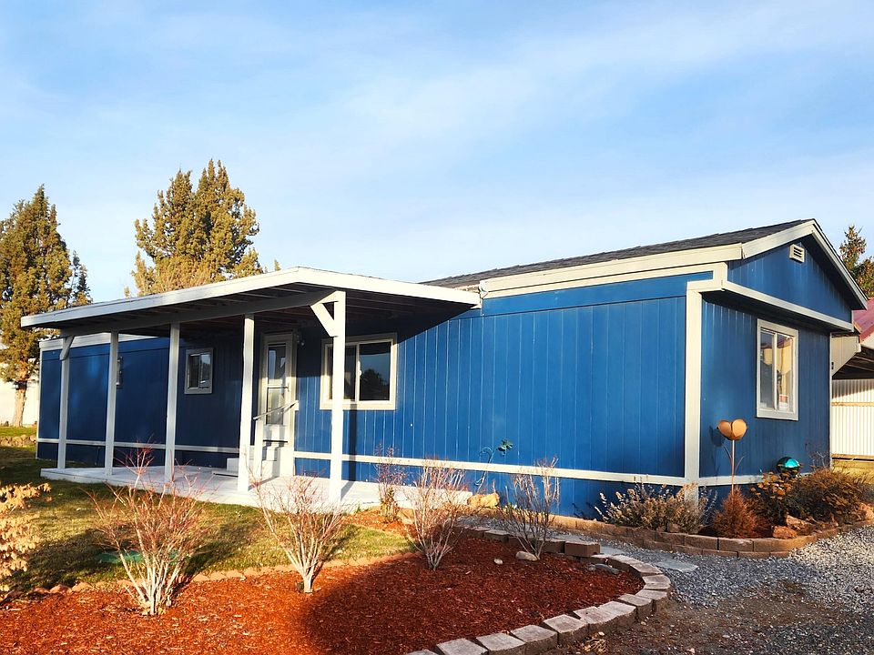 Affordable, cute home in quiet, 55+ Mt View MH Park with low space rent! Open floor plan with good separation of bedrooms. Peek-a-boo mountain views from front of home. Enjoy your morning coffee on the front covered patio or covered back deck. New in August/Sept 2023 - roof, interior paint, deck painted, carpet, kitchen cabinets painted and new hardware, thermostat, back porch light, and floor registers. Walkway from double carport to home is covered to keep you dry from the rain or snow. Large, framed storage area in carport. This clean, attractive park is convenient to Redmond and Bend. Space rent is $525 and includes water/septic/garbage, a small park area and street snow removal. RV parking is available in the park. Sold AS-IS. Priced right and waiting for a new owner!