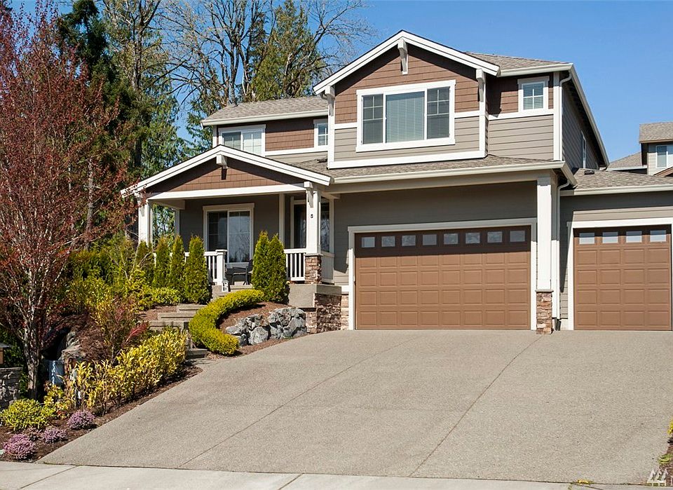 Spectacular 2014 craftsman w/ open, airy layout, high ceilings, maple flrs, many upgrades. Gorgeous kitchen w/ SS apps, lrg granite island, pantry, dining nook. Flows into cozy living rm w/ mosaic fireplace. Impressive master suite has vaulted ceilings, walk-in, 5-piece bath w/ dual vanity. Rainier views upstairs! Outside, enjoy pro landscaping, level fenced yard, covered patio. Great bonuses: office, utility rm, sprinkler, AC, 3-car garage. Peaceful neighborhood near schools, parks & more.