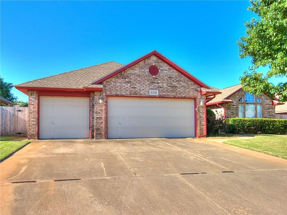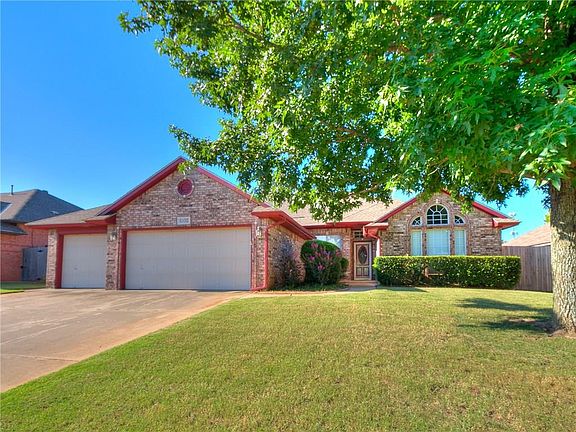 Beautiful brick home w/ 4 bedrooms. Open floor plan, open to family room w/ fireplace and formal dining. Laundry room with sink leads to a 3 car garage. Spacious master bedroom suite, with master bath with dual vanities, whirl pool tub and stand up shower. The master closet has built in storage. House has spacious guest rooms with large closets and storage throughout the house. The backyard is an oasis with inground sprinkler system and beautiful landscaping you can enjoy from your covered porch. Located within walking distance of Boeing, Northrop Grumman and Tinker Airforce Base.(all on side walks for safe walk or bike ride)