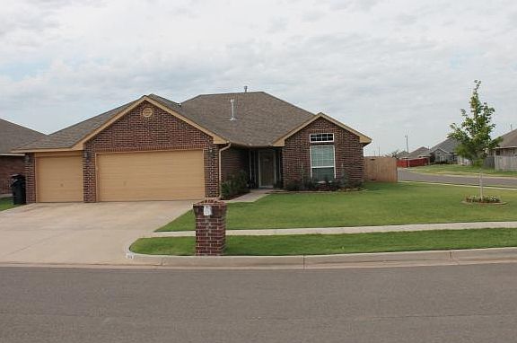 Very nice home ready for its new family located in Moore Public Schools! Home has 3 Bedrooms, 2 Full Baths, and a 3 Car Garage with storm shelter. Situated on a corner lot with a LARGE backyard. Open Kitchen/Living flow nicely. Spacious living room and dining have lots of windows along the back of home giving great natural light. Kitchen area has tons of storage, breakfast bar & dining area. The refrigerator is included. Split floorplan giving privacy to the Master Suite. Enjoy the master retreat with tray ceiling, Australian walk-in closet, double vanity, garden tub and separate shower. The secondary bedrooms have large closets as well. Located near highway access for quick travel to anywhere in the metro. Just minutes from I-240, Tinker, Boeing, and Downtown OKC. Schedule a private tour today!