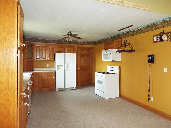 Wonderful country ranch situated on 4 peaceful acres, features include 3 bedrooms and 2 full baths, open great room floor plan with vaulted ceilings, large living room and dining area, pretty oak cabinet filled kitchen with adjoining main level laundry/mud room, owners suite with its own private bath, full basement offers tons of storage space, attached 2 car garage, 40 x 32 pole barn plus an additional barn currently set up for horses and chickens, great edge of town location, country living at its finest. $239,900