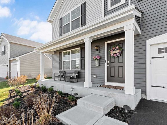 NEW WITHOUT THE WAIT! Impeccable 2 year old home offers 3 bedrooms, spacious loft, 2 1/2 bathrooms, Inviting front porch and 2 car garage on oversized lot. Gourmet open-concept kitchen features large island with additional storage, abundant counter space, tall designer cabinets, Frigidaire stainless steel appliances & recessed lighting. Kitchen & eating area open to large sun-filled cozy family room great for entertaining or family gatherings. Versatile living room/dining room. Impressive master suite with wall of windows & custom window treatments, spacious walk-in closet with organizers. Deluxe master bathroom with dual vanities, linen closet, large walk-in shower & separate water closet. Massive loft great for office, play area or exercise room. Spacious 2nd and 3rd bedrooms with ample closet space & overhead lighting. Hallway bathroom with double vanity & tub/shower. Convenient second floor laundry with storage cabinets & washer and dryer included. White trim & doors, neutral paint throughout. Dry basement ready for your finishing touches with additional crawl space. Attached 2 car garage. Located on a professionally landscaped private corner lot in desirable Fall Creek Community with playground and pond. Great Location just blocks from Shopping, Dining & Golf. Easy Access to Rt 59 and Interstates I-55 & I-80. A New home for the holidays. Hurry this one won't last long!