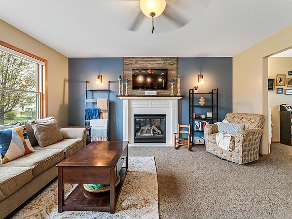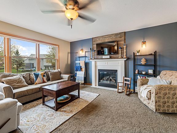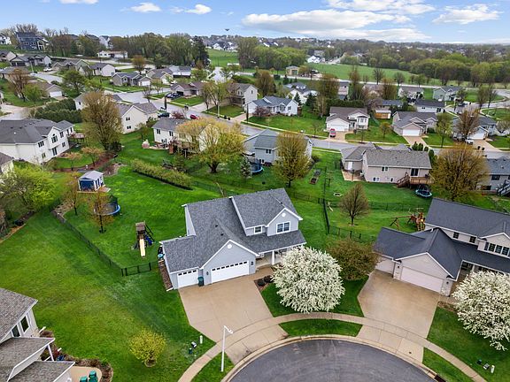 Step into sophistication with this remarkable and spacious two-story home! Beginning with the gorgeous open kitchen and extending to the inviting sitting room that showcases a cozy gas fireplace, perfect for unwinding after a long day. With 4 bathrooms and five bedrooms, including four conveniently located on one level, there's ample space for everyone. The primary bathroom suite offers a luxurious retreat with a spacious walk-in closet. Say goodbye to laundry day stress with main floor laundry for added convenience. Enjoy comfort year-round with 2-zone heating and four baths ensuring everyone's comfort. Entertain with ease in the finished lower level complete with a bar area. Nestled in a tranquil cul-de-sac, the expansive backyard awaits, featuring a delightful patio area, shed, and flourishing Honeycrisp apple trees. This home has been meticulously cared for, offering plenty of storage and a deep 3-car garage. Don't miss out! Schedule a showing today!