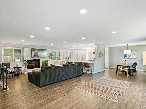 Renovated Rambling Ranch With 3,000+ SF In Arvada’s Lake Arbor Community! Move-in-ready 4-bed, 3-bath home greets you with a sprawling open main floor that lives and entertains graciously. White plantation shutters and rich woodgrain vinyl plank flooring create a sleek modern ambiance. You can fit even the largest of furniture in the Great Room with ease, centered around a cozy brick fireplace. The sunlit kitchen features timeless design with quartz countertops, designer backsplash, and large window over the sink where your plants will thrive. Stow all your wares with the ample cabinetry and gather around the generous breakfast bar. Upgraded appliance package with a stunning range hood completes the space. Impressively sized dining room is perfect for hosting friends and family. Three bedrooms rest on the main floor, including the Primary suite with a full bath dressed with designer finishes. Main-floor secondary bedrooms are spacious and include remarkable closets! Second full bath on the main floor serves the secondary bedrooms. Basement delivers a huge bonus den with a bar - perfect for a family room, workout space, kids play area, or home office. Fourth bedroom with an egress window and an additional three-quarter bath offers an ideal space for guests. Dedicated laundry area provides bonus storage, as does the space under the stairs. Out to the charming backyard with a large covered patio for dining al fresco! The fenced yard is perfect for playing with your four-legged pals. This picture-perfect home is just a short block away from the centerpiece of the community, Lake Arbor, and its new walking trails and scenic mountain views. You’ll enjoy the stellar amenities nearby including a pool, clubhouse, park, playground, lake, and trail access. Conveniently located for an easy commute anywhere, even Boulder, this one is sure to check ALL of the boxes in the search for your family’s dream home!