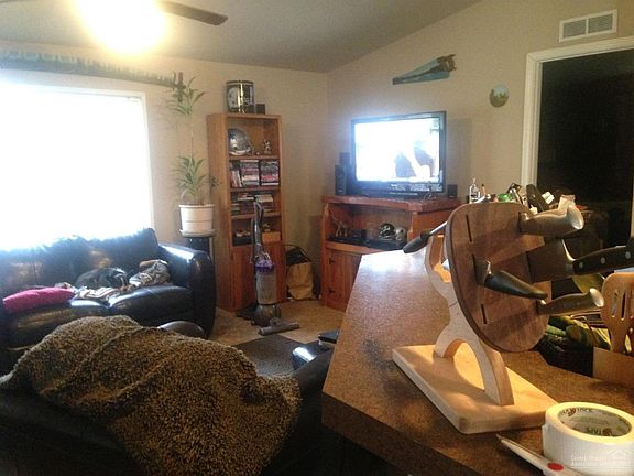 2015 manufactured home for sale on rented space. Vaulted Ceiling through out. Every room has a walk in closet. 2 bathrooms. Master bathroom has a huge tub. Master bedroom is large. Bedrooms are split by the great room. . One tuff shed and a smaller storage shed in the carport. Fenced backyard. Pet door that leads to fenced back yard. One of the park common area is right behind the house so it is like you have a bigger yard. Carport. 1248 SQ FT Yellow house with a beautiful red front door with a screen door.