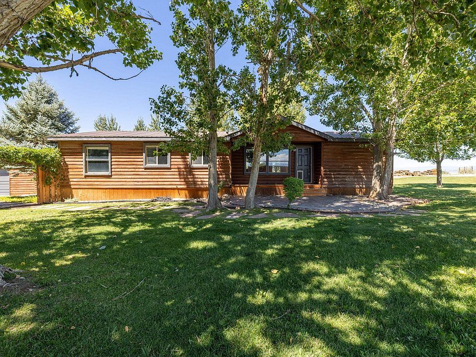 Nestled on a serene 1.15-acre lot in Montrose, CO, this beautifully maintained manufactured home offers a delightful log-home aesthetic and a desirable split floor plan. The large living room, perfect for relaxing or hosting gatherings, features vaulted ceilings that enhance the grand interior feel. A rustic stone surround frames the wood-burning stove, adding warmth and character to the space. The spacious kitchen is truly the heart of the home, boasting a large center island, an abundance of farmhouse-style white cabinetry, floating shelves, and glass door display cabinets. This inviting space is complemented by a separate dining area for added convenience. Adjacent to the kitchen, an enclosed sunroom/flex room with tongue-and-groove ceilings and a plantation-style fan exudes southern elegance and charm. The primary bedroom offers a peaceful retreat, complete with an en-suite bathroom that includes a relaxing jetted tub, a generous walk-in shower, and a tile vanity. A large walk-in closet provides ample storage space. The crisp and clean laundry room is thoughtfully designed with storage cabinetry, accent wallpaper, and attractive tile flooring. Step outside to a serene backyard, where mature shade trees and a large stone patio create the perfect setting to soak in the breathtaking panoramic mountain and valley views. Additional features include a 2-car attached garage and ample on-site space for RV parking. This charming home is a perfect blend of rustic elegance and modern convenience, offering a tranquil lifestyle in the beautiful Montrose countryside!