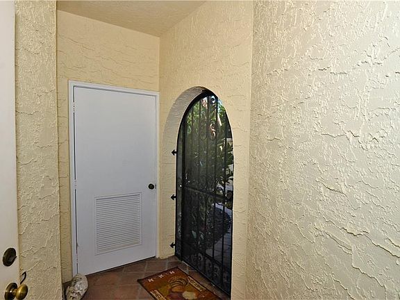 Spanish Mediterranean Style first floor condo with lake view. Furnished 2 bedroom, 2 bath plus den or 3rd bedroom (small closet). Attractive laminate wood flooring in living area and ceramic tile in kitchen and both baths and 2nd bedroom. Gated community with resort style community pool, clubhouse and fitness center and a game room. Pet friendly. The screened inclosed lanai across the back looks out at the well kept grounds and a peaceful lake. Eating space in the kitchen and a pass thru window to the dining room. Living area has a wet bar and glass sliders out to the lanai. Master bedroom has two walk in closets and the master bath has a relaxing tub plus separate shower. There is a walled private courtyard off the den and second bedroom area.
