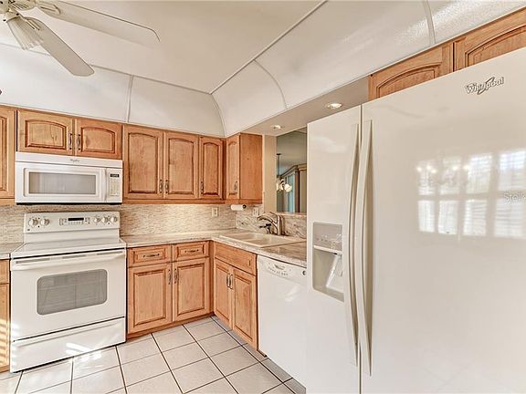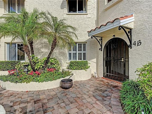 Access to this Spanish design complex is through large iron gates through which you enter onto lush, groomed acres of tropical palms, flowering trees and gardens. Entrance to this unit is through a graceful arched wrought iron door within a semi-private courtyard with water fountain and beautifully tended gardens. This property has a recently renovated eat-in kitchen with wood cabinets, Corian countertops and glass mosaic backsplash also looks unto the courtyard gardens. There's a spacious Living room and dining area which give access to the 24' glassed lanai and sweeping views of the pond with water fountain. The ponds attract all kinds of birds, ducks and geese, on occasion you even see turtles and otters. The master bedroom is spacious and gives access to the lanai and private bath with separate tub and shower and sliders to a secluded tiled privacy garden. Two walk-in closets offer plenty of storage space but if you need more, there's a large walk-in storage closet off the front entry and loads of storage in the laundry room. The sunny guest room with private bath also give views and access to walled, gated privacy garden. The glassed, pond view lanai has enough space for both dining and sitting and is a perfect spot for evening cocktails. Residents have use of a large recently renovated clubhouse with great room for meeting and events, library, work-out room, pool table and game room. There's an amazing resort style pool that's heated year-round and in-ground hot-tub spa. There's also access to men's and ladies bathrooms with showers Vizcaya is a residential complex located within a few miles of beaches, stores, and airport.