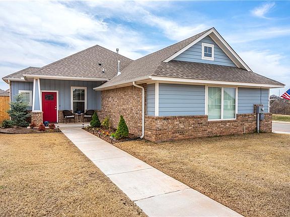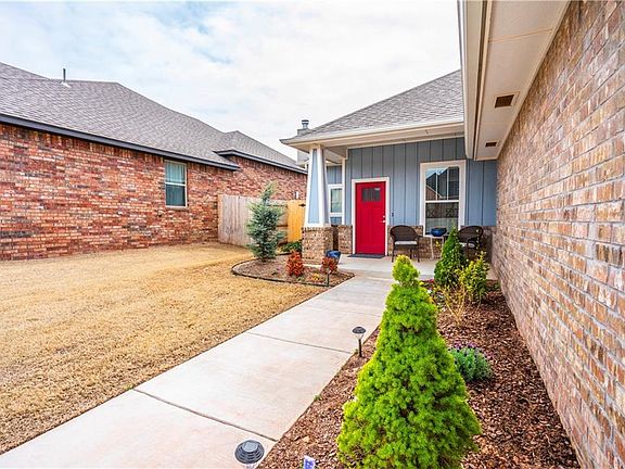 BETTER THAN NEW! BARELY LIVED IN! PRISTINE CONDITION! CORNER LOT with side entry garage. Sits on a hill with the most beautiful views of Oklahoma sunsets. PERFECT LOCATION just off I-35 and Covell to enjoy the rapidly developing I-35/Covell coridoor and quick access downtown. On trend, grey and white color palette. Designer fixtures and lighting. Open floor plan. Beautiful wood floors in living room, dining area and kitchen. Kitchen has gorgeous granite countertops, timeless subway tile backsplash, glass front display cabinets as well as fully enclosed cabinets, pantry and breakfast bar. Master bedroom has vaulted, wood beam ceiling and ensuite bathroom with whirlpool tub, large shower and great walk in closet. New wood fence. Sprinkler system. Large decked attic for storage. Storm shelter in garage. Schedule your exclusive showing today! This gem won't last!