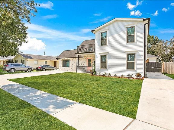 Stunning remodel in a prime location, just steps from Lafreniere Park! Completely redone from the studs up in 2021, this home offers a sleek contemporary open floor plan. Enjoy a gourmet kitchen with an oversized quartz island & stainless steel appliances, plus a first-floor master en-suite with a spacious walk-in closet, soaking tub & shower and bonus office space. Upstairs boasts 3 large bedrooms, a full bath, and a charming front balcony. The backyard is an entertainer's paradise with an above-ground pool, outdoor covered kitchen (granite counters & sink!), and a bonus shed space. Flood Zone X.