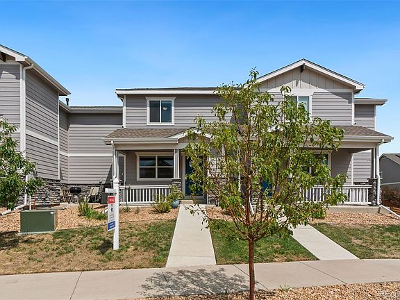 Welcome home to this fantastic townhome nestled within Erie's Wyndham Hill community. This townhome has it all. As you enter the home, just off the covered front porch, you will notice a welcoming and open layout, with easy maintenance laminate wood floors throughout the living room, kitchen, and dining area. The kitchen is sure to impress, offering stainless steel appliances a large in kitchen eating area, and plenty of cabinetry for storage and organization. A quiet patio off the dining area provides a perfect spot for relaxation. Upstairs, you'll find three good sized bedrooms, including a primary suite with a primary en-suite bathroom, providing comfort. Also upstairs you will find a generously sized laundry room equipped with a washer and dryer. Additionally, a large unfinished basement offers ample storage space or the potential for future expansion. With quick access to I-25 and just minutes away from the towns of Erie and Frederick and 20 minutes to Longmont, Boulder, and Thornton this townhome offers convenience. The community also features a resort style pool, trails, parks, clubhouse, and elementary school.