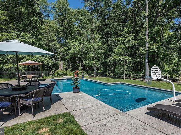 WELCOME HOME! This very well-maintained colonial sits back off the road on 5 acres of lush privacy. It has over 3,200 sq ft of living space, PLUS finished, walk-out basement. The interior offers a dramatic and welcoming 2-story foyer with split staircase, hardwood flooring and lots of natural light. In its traditional center hall style, the formal living room sits on one side and the large formal dining room on the other with easy access to the kitchen. The gourmet kitchen features newer stainless appliances, large pantry closet, 6-ft island, double oven, gas cook-top and large breakfast room with sweeping views of the yard and pool. Opposite the kitchen, a spacious family room includes a fireplace. An oversized laundry room with utility sink and newer washer and dryer and powder room complete the main level. The 2nd floor has 3 large bedrooms (all with double closets), and full hall bath with skylight and double vanity. The master suite offers a private 12x14 sitting room (ideal space for office or nursery), walk-in closet and a luxurious bath complete with dual sinks, double stall shower and jetted soaking tub. The walk-out basement is finished into two large rooms with new carpet and a storage room. It highlights built-in cabinetry, beverage cooler, microwave, half bath and new carpet. French doors from the basement lead out to the fenced, 8-year old, heated, inground pool with waterfalls, diving rock and an expansive backyard. There is 3.5-car high-bay garage (suitable for a hydraulic lift), with a workshop area and attic storage. Additional amenities include a rear deck, central vacuum system, fresh paint throughout, ceiling fans, recessed lighting, 2-zoned HVAC (2 new A/C units and 1 new furnace), professional landscaping, and maintenance-free brick and vinyl exterior. Conveniently located in Mount Laurel, close to nearby shopping, major highways, Philadelphia and the Jersey Shore.